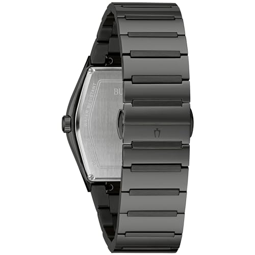 Meet the smooth new addition to the Bulova’s Trendy Gemini watch assortment, the Gemini Diamond. This watch has a refined, modern attraction with its black curved tonneau chrome steel case that includes signature Trendy metalized edge to edge crystal. The black 3-hand dial, is accented by 4 sensible hand-set diamonds on the 15-minute markers. The chrome steel black bracelet, with a deployant clasp and pushers, completes the streamlined, monochrome impact. This distinctive timepiece has a cultured look that exemplifies the wearer’s sense of fashion.